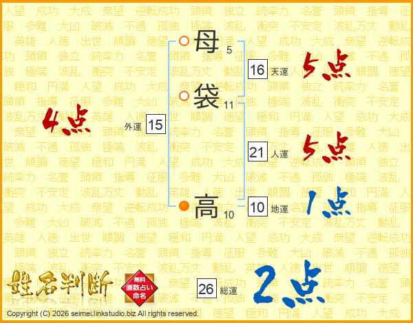 母袋高さんの総運は26画の2点!