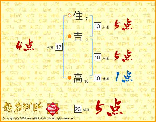 住(7画)吉(6画)  高(10画)