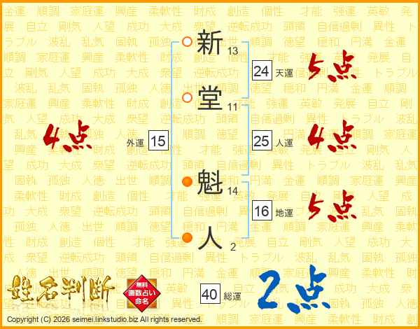 新堂魁人さんの総運は40画の2点!
