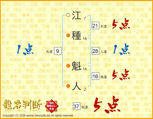 江種魁人さんの総運は37画の5点!