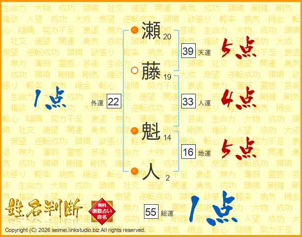 瀬藤魁人さんの総運は55画の1点!