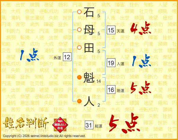 石母田魁人さんの総運は31画の5点!