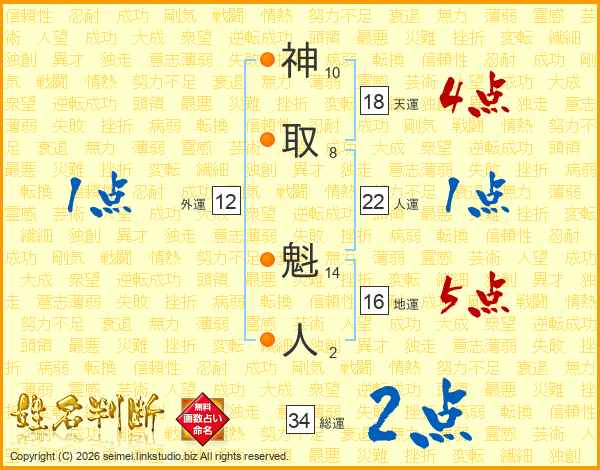 神取魁人さんの総運は34画の2点!