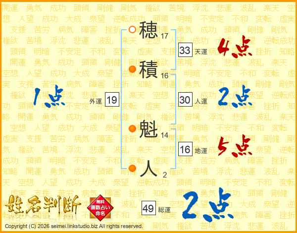 穂積魁人さんの天運は33画の4点!