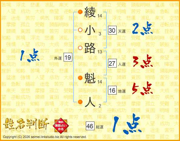 綾小路魁人さんの地運は16画の5点!