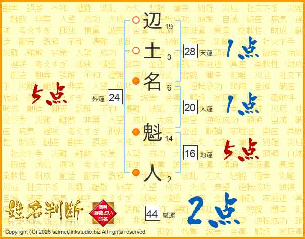 辺土名魁人さんの総運は44画の2点!