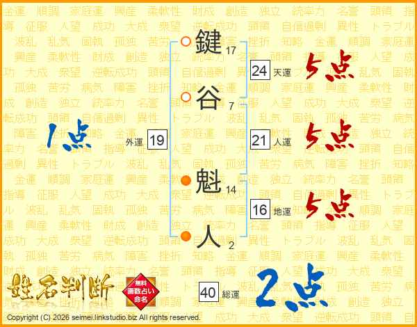 鍵谷魁人さんの総運は40画の2点!