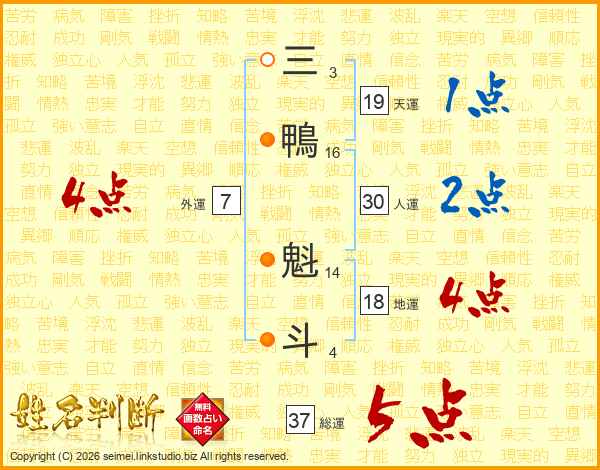 三鴨魁斗さんの総運は37画の5点!
