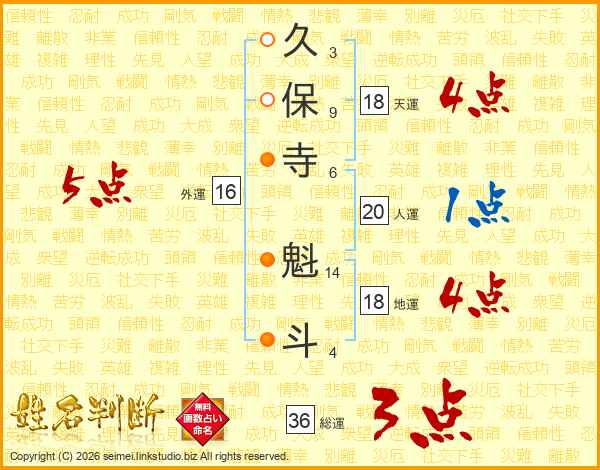 久保寺魁斗さんの総運は36画の3点!