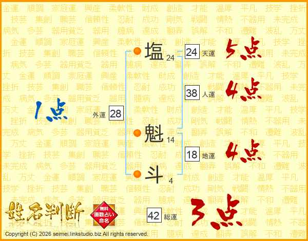 塩(24画) 魁(14画)斗(4画)