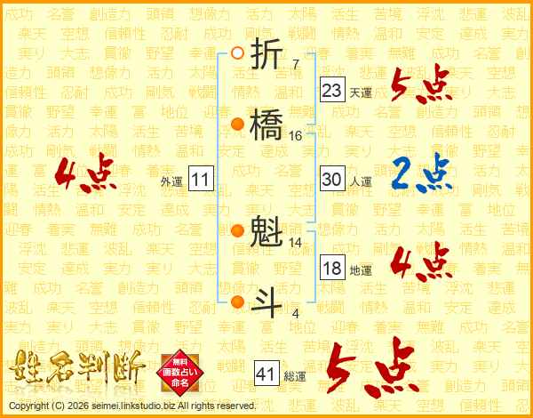 折(7画)橋(16画) 魁(14画)斗(4画)