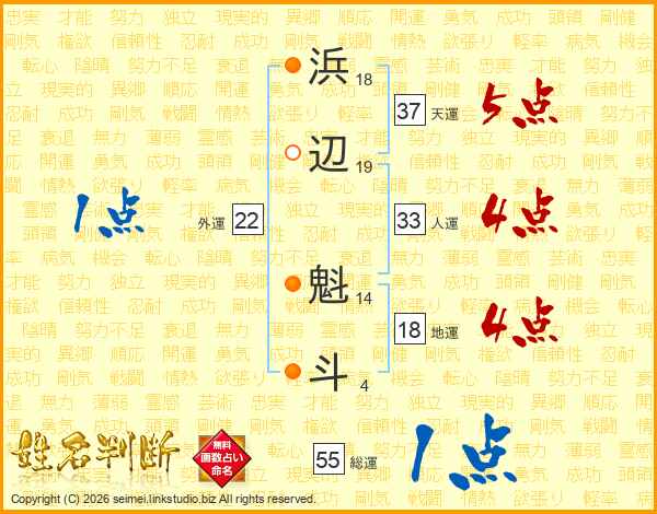 浜辺魁斗さんの天運は37画の5点!