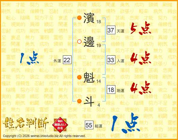 濱邊魁斗さんの人運は33画の4点!