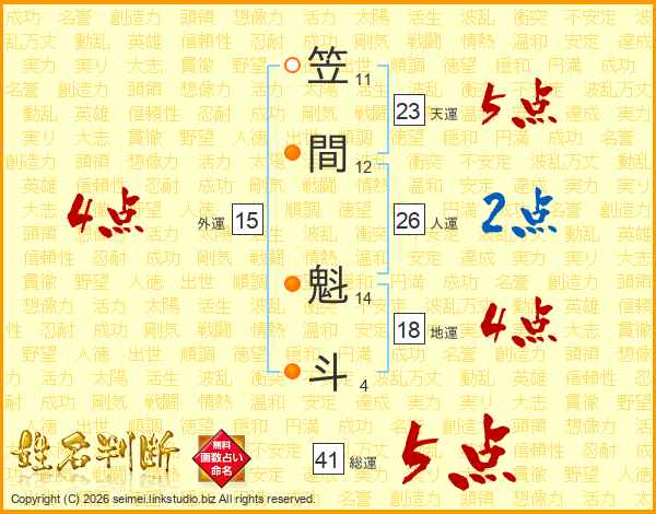 笠間魁斗さんの総運は41画の5点!