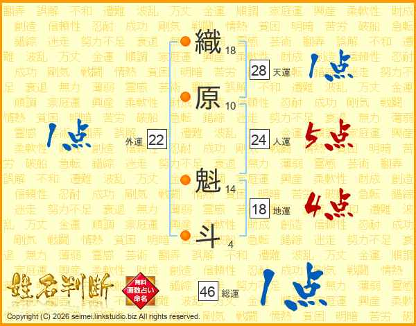 織原魁斗さんの総運は46画の1点!