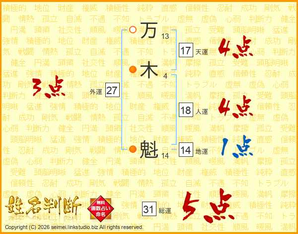 万木魁さんの総運は31画の5点!