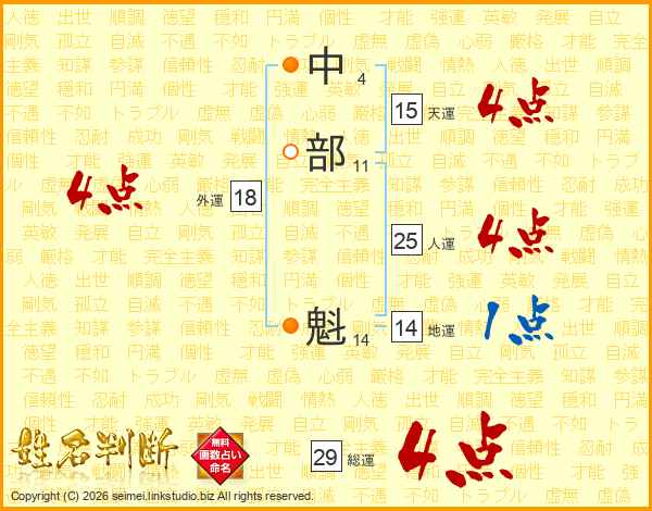 中部魁さんの総運は29画の4点!
