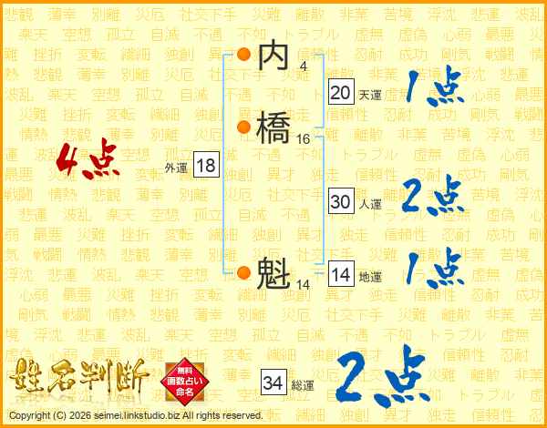 内橋魁さんの総運は34画の2点!