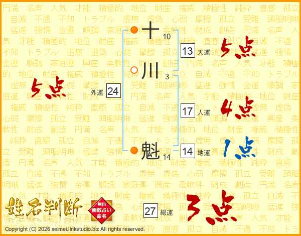 十川魁さんの総運は27画の3点!