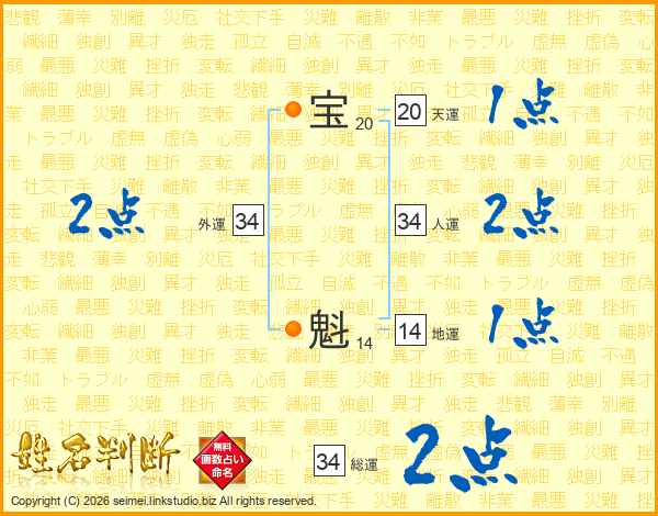宝魁さんの総運は34画の2点