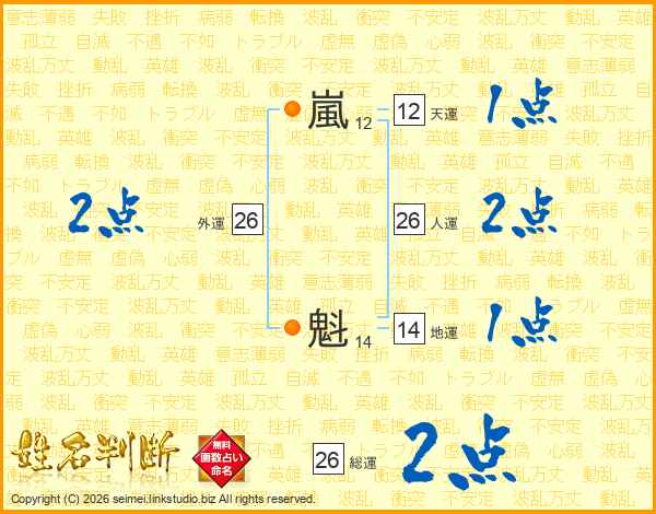 嵐魁さんの総運は26画の2点