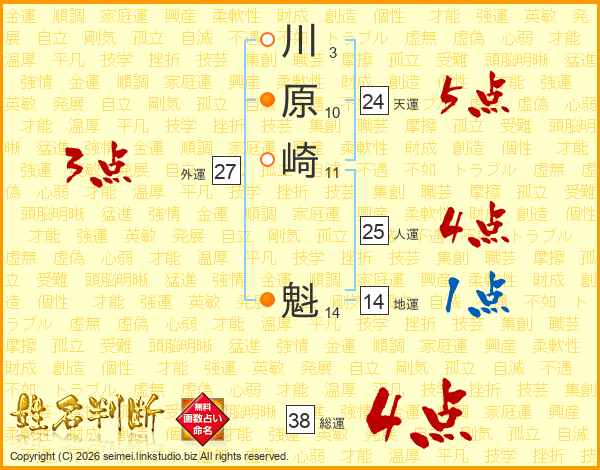 川原崎魁さんの総運は38画の4点!