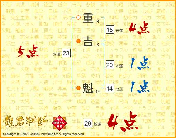 重吉魁さんの総運は29画の4点!