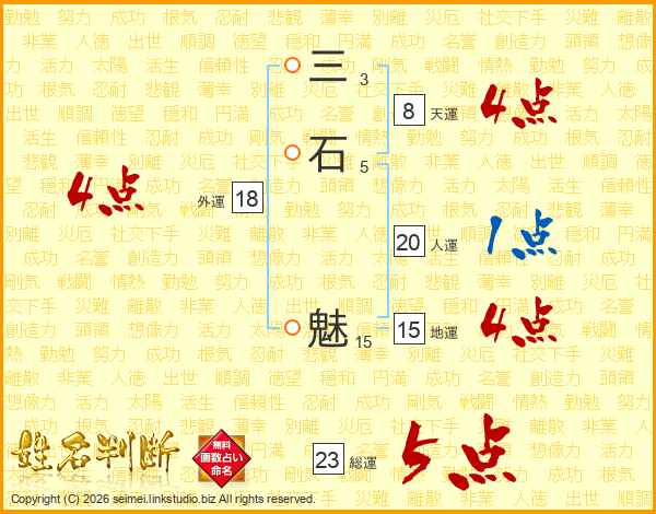 三石魅さんの総運は23画の5点