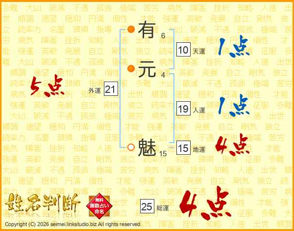 有元魅さんの総運は25画の4点!