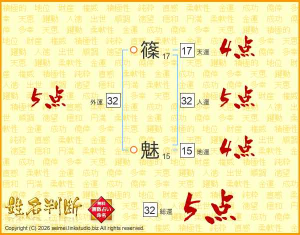 篠魅さんの人運は32画の5点