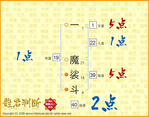 一魔裟斗さんの地運は39画の5点!