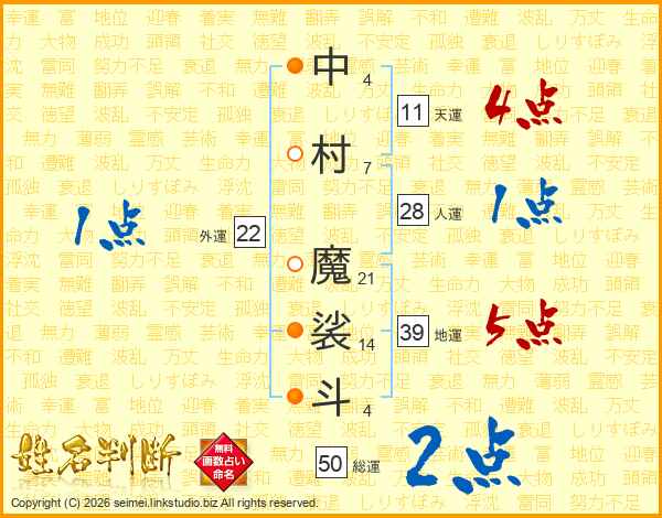 中村魔裟斗さんの天運は11画の4点!