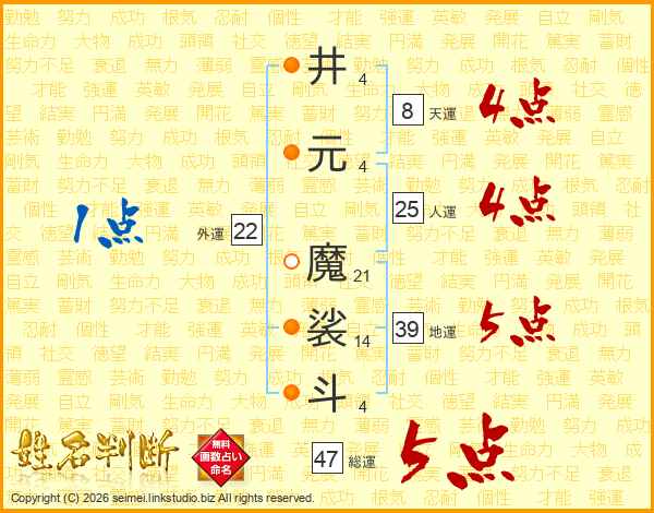 井(4画)元(4画) 魔(21画)裟(14画)斗(4画)