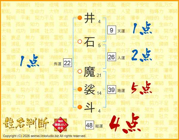 井石魔裟斗さんの地運は39画の5点!