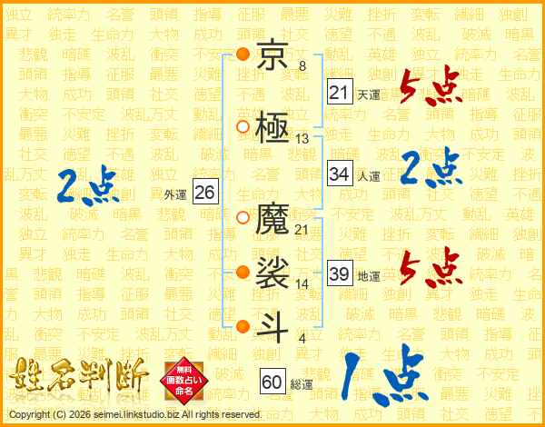 京(8画)極(13画) 魔(21画)裟(14画)斗(4画)