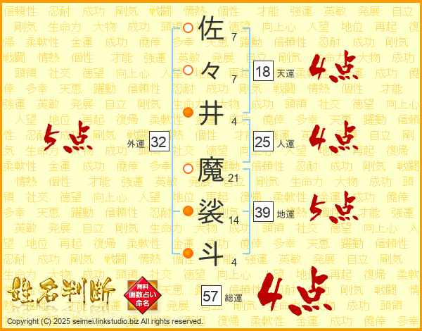 佐(7画)々(7画)井(4画) 魔(21画)裟(14画)斗(4画)