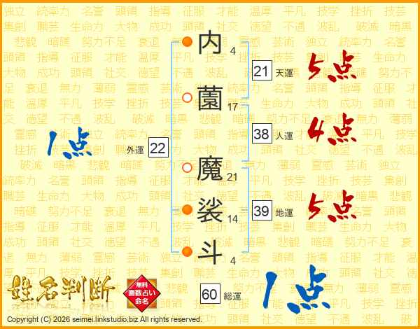 内薗魔裟斗さんの天運は21画の5点!