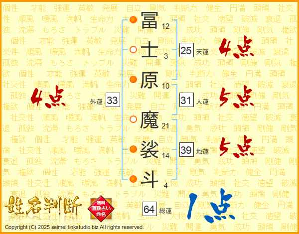 冨(12画)士(3画)原(10画) 魔(21画)裟(14画)斗(4画)