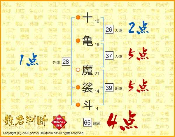 十(10画)亀(16画) 魔(21画)裟(14画)斗(4画)