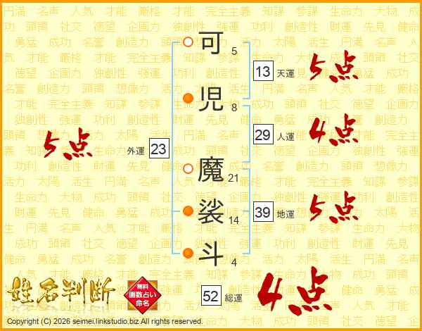 可(5画)児(8画) 魔(21画)裟(14画)斗(4画)