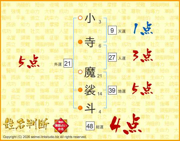 小(3画)寺(6画) 魔(21画)裟(14画)斗(4画)