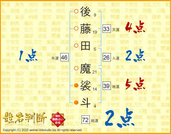 後(9画)藤(19画)田(5画) 魔(21画)裟(14画)斗(4画)