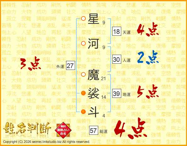 星河魔裟斗さんの総運は57画の4点!