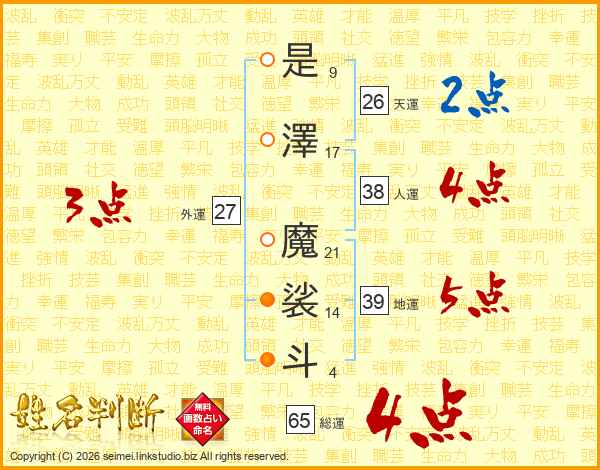 是澤魔裟斗さんの人運は38画の4点!