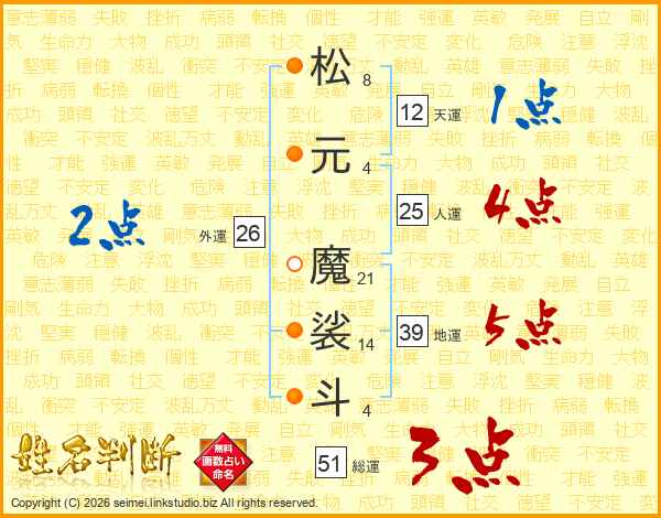 松元魔裟斗さんの総運は51画の3点!