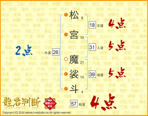 松宮魔裟斗さんの総運は57画の4点!