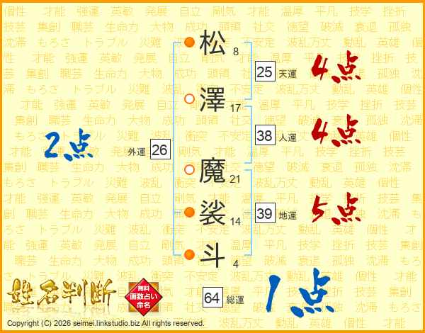 松澤魔裟斗さんの総運は64画の1点!