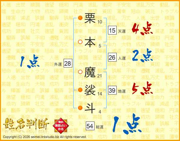 栗本魔裟斗さんの地運は39画の5点!