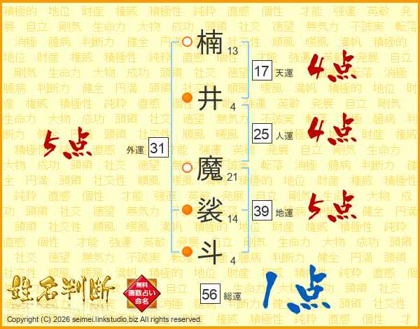 楠井魔裟斗さんの外運は31画の5点!