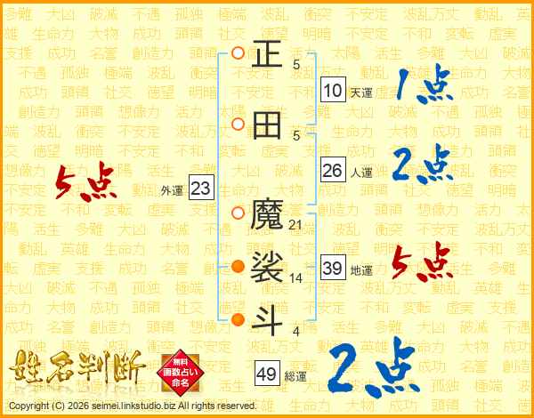 正田魔裟斗さんの総運は49画の2点!